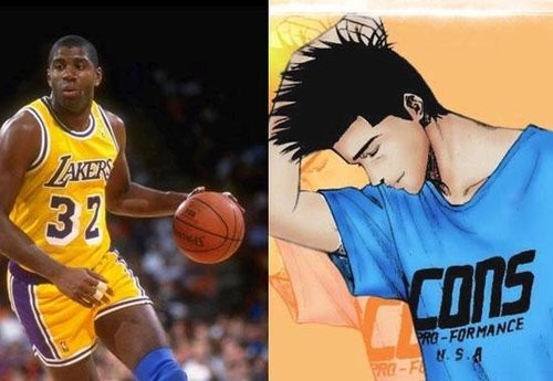 仙道的球技深不见底,传球更是出神入化,拥有大前锋的高度却可以在控球后卫的位置上打得游刃有余。这些特征太像在80年代引领湖人SHOWTIME进攻风潮的“魔术师”约翰逊了。而且仙道和约翰逊一样球品人品都没的说,两人还都穿着匡威的篮球鞋。将仙道比作约翰逊的更重要原因就是,仙道是让流川枫第一个吃败仗的人,而“魔术师”约翰逊在80年代中后期也常常压制着流川枫的原型乔丹,在90年乔丹击败“魔术师”约翰逊第一次拿到了冠军,而流川枫若想成为日本第一球员,必须要超越的就是挡在他面前的这个劲敌仙道