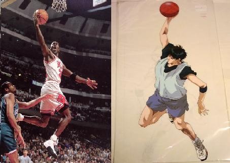 两人都是篮球能力出色,而且都英俊潇洒一表人才。两个人性格上都是不服输而且意志坚强。在许多细节方面两人也有类似的地方,从无数方面表明,流川枫的原型就是乔丹