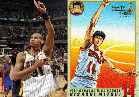 同样精准的投篮,同样拥有不服输的性格和力挽狂澜的远射能力。三井在与翔阳的比赛中最后时刻连入四个三分挽救了球队和在与山王工业的比赛中最后关键的打四分。正如雷杰米勒20秒得八分拯救球队还有在比赛最后无数次绝杀对手的米勒时刻一样。