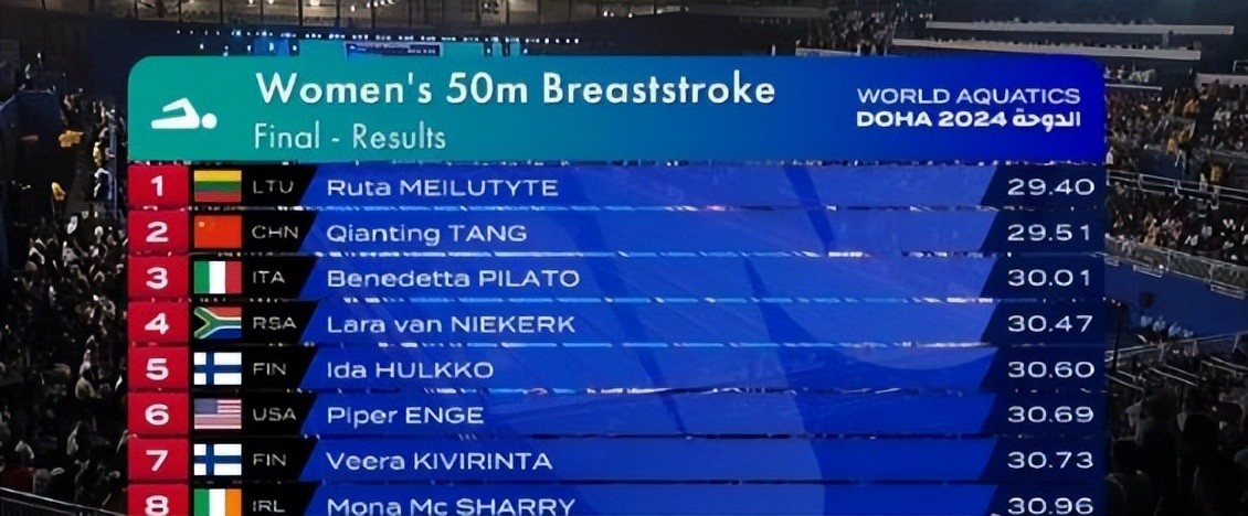 首先是女子50米蛙泳决赛中,唐钱婷与立陶宛的梅卢提特肩并肩冲刺,观众的呼吸几乎停滞。