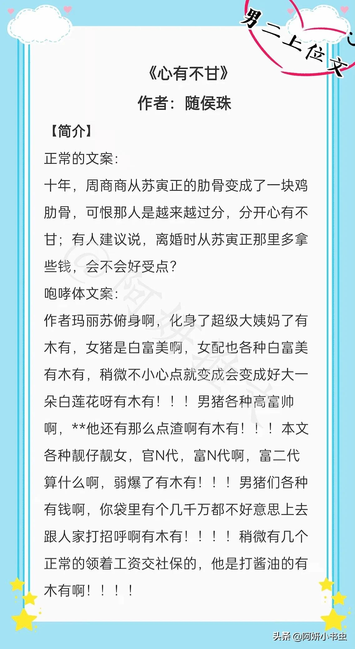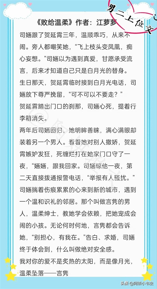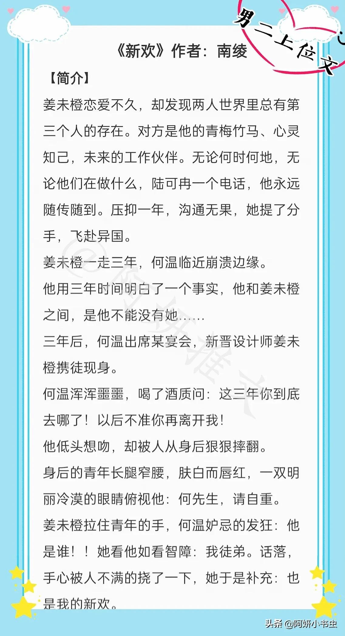 今天推荐的是男二上位文!书中的男主就是渣男本渣了,女主前期委屈,有被做替身,反正看着就很气,最终女主一招心死选择分手离开 ,幸而碰见’男二’他给足了女主温暖 ,给足了宠爱 ,文笔都很赞,喜欢的朋友不要错过哦!#小说##言情小说#