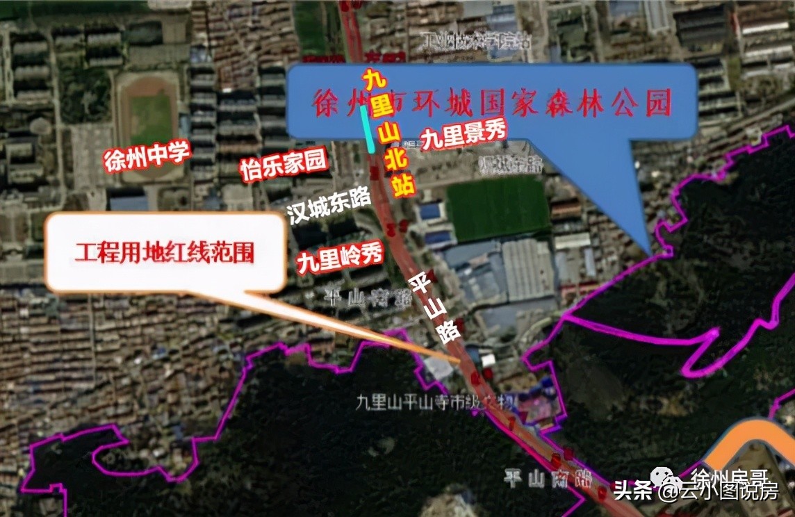 位于平山北路与九里山东路交汇处,沿平山北路平行布线