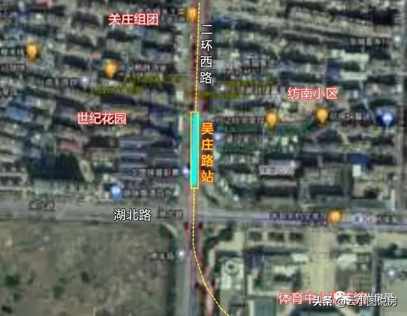 位于湖北路和二环西路交汇处,沿二环西路布线。