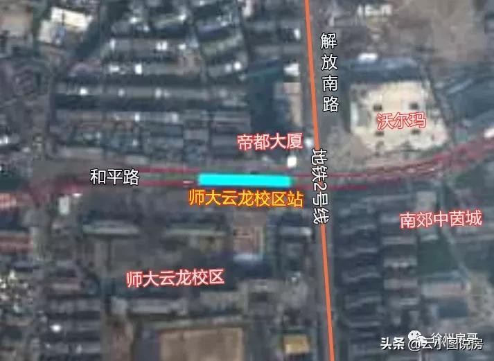 位于解放路与和平路交汇处,与2号线师大云龙校区站换乘。