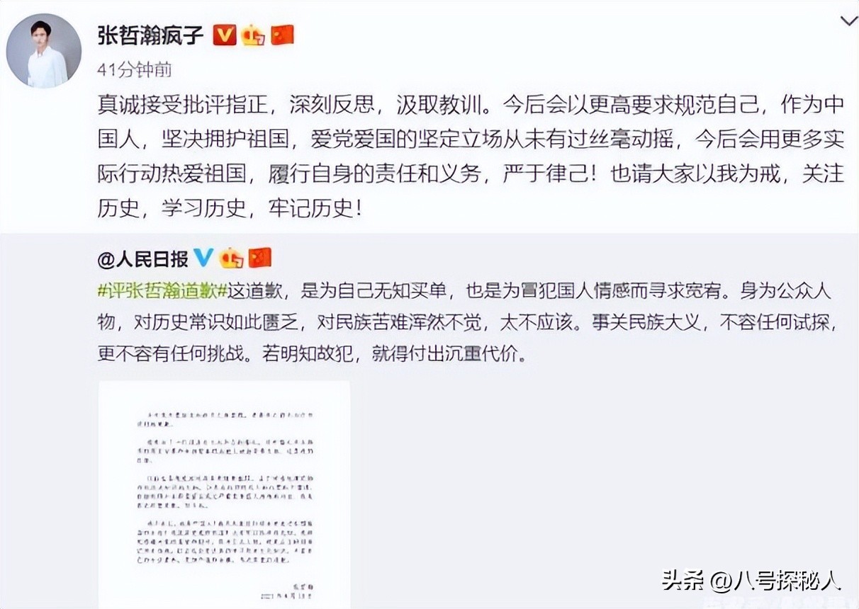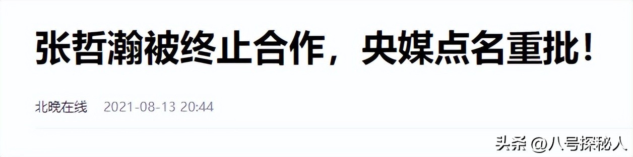 北晚在线——张哲瀚被终止合作,央媒点名重批!