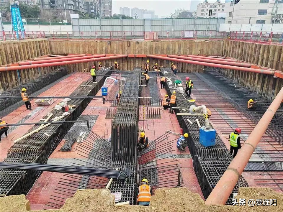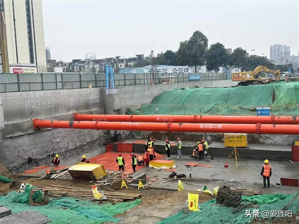 市区五洲广场站是市域铁路成德线(S11线)德阳段的第二个地下站,该工点目前正在进行的盖板结构施工、基坑土方开挖作业。