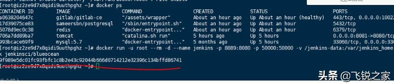 docker run -u root --rm -d --name jenkins -p 8889:8080 -p 50000:50000 -v /jenkins-data:/var/jenkins_home -v /var/run/docker.sock:/var/run/docker.sock jenkinsci/blueocean