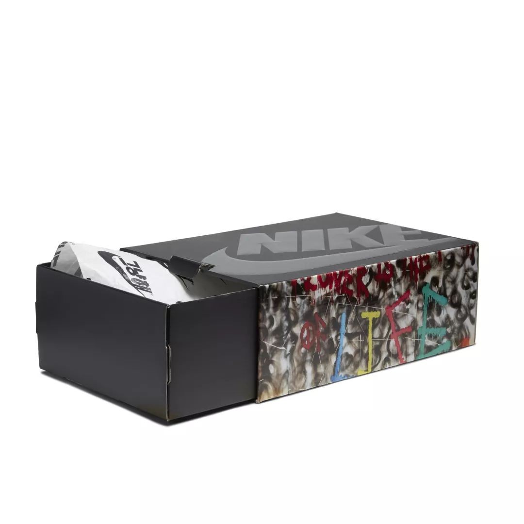 市售版鞋盒也与众不同,抽屉式鞋盒侧面布满涂鸦,衬纸也特别选用带有韩文的 Logo,彰显出联名诚意。