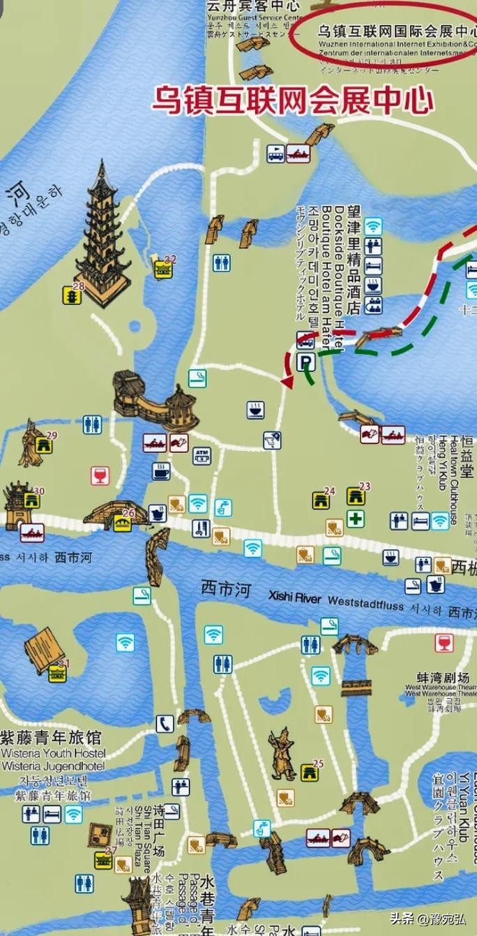 乌镇互联网国际会展中心由“普利兹克建筑奖”获得者、中国美院教授王澍先生领衔设计,位于乌镇西栅景区西北部,西临运河,东连环河路,南接西栅景区,总建筑面积约6万平方米,于2016年10月全部完工,是未来世界互联网大会召开的主要场馆,也是今后乌镇景区承接会议、会展的主要场所。