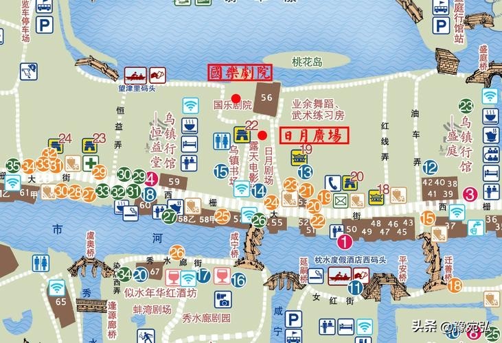 水乡乌镇现有东栅、西栅、南栅、北栅4个景区可以游览。其中西栅因原住民迁出,规划较好,配套成熟,旅游体验感最佳,而夜景十分美丽,但门票价格偏贵;东栅是电视剧《似水年华》的取景地,沿河岸有很多名人故居和当地人的商铺,相比于西栅更有人文气息,门票价格适中;南北栅更为原生态些,生活市井气息更浓。
