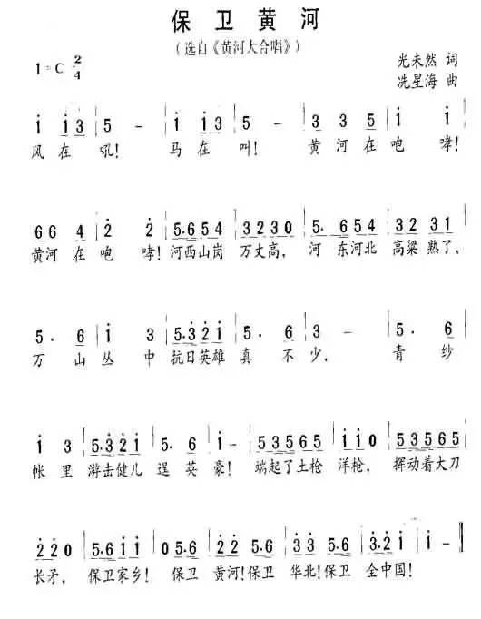 《保卫黄河》是《黄河大合唱》第七乐章。歌曲采用齐唱、轮唱的演唱形式。具有广泛的群众性,是抗日军民广为传播的一首歌曲。