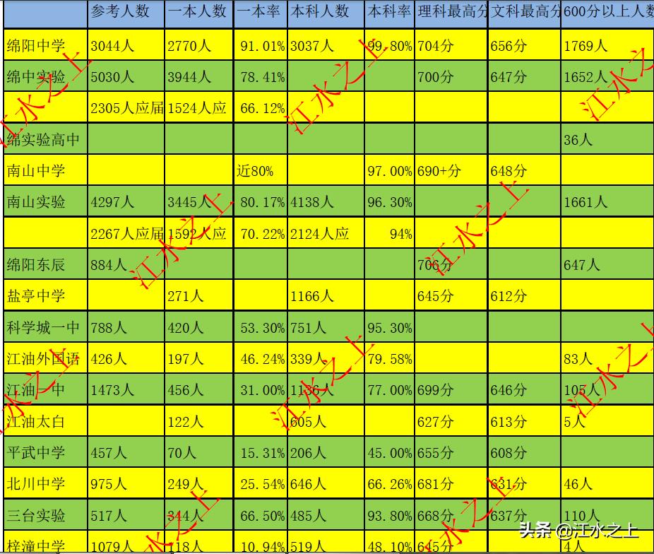 三台县芦溪中学、三台县一中、高新区实验中学、绵阳开元中学、丰谷中学秀水中学等学校的高考成绩暂时没有,有知道的朋友,欢迎留言补充,我会统一整理好补充进去。