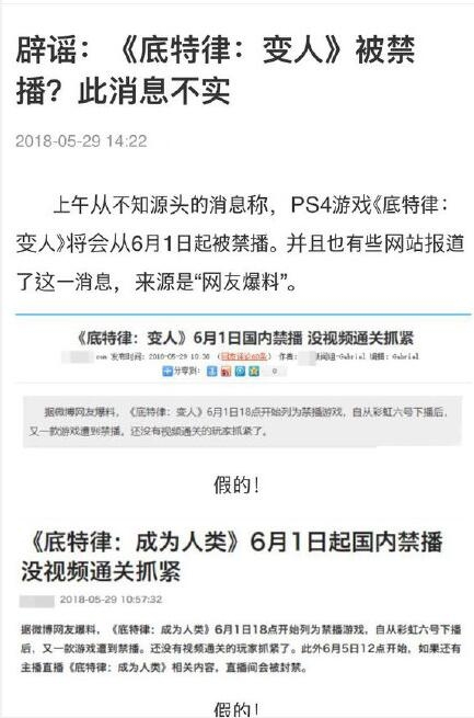 引发一顿热议,很快辟谣的消息也出现了,《底特律:变人》被禁播?此消息不实。