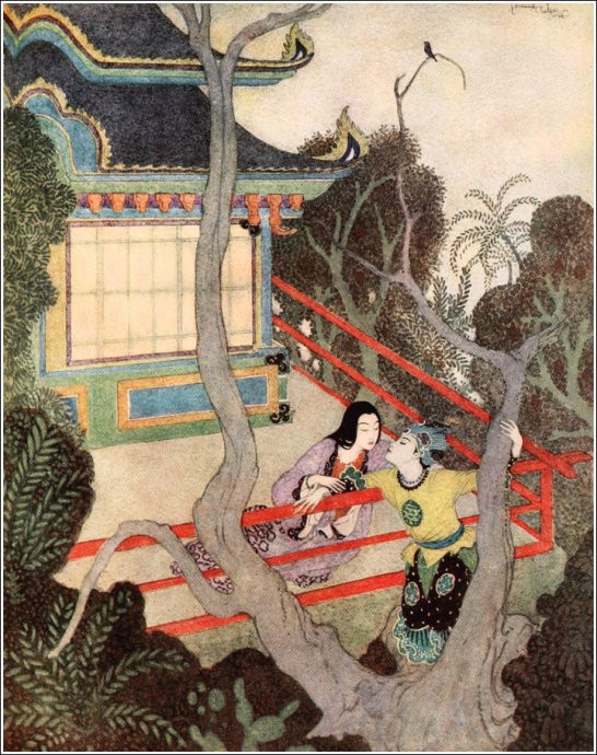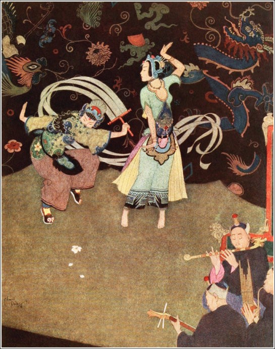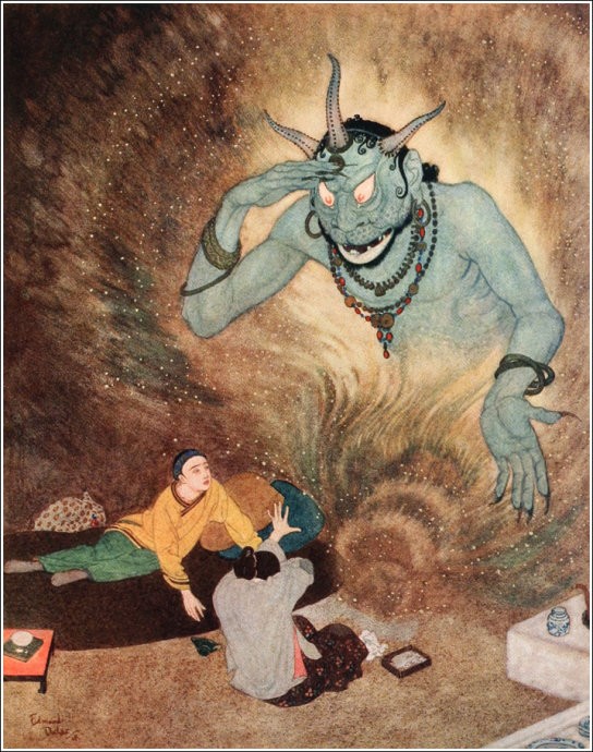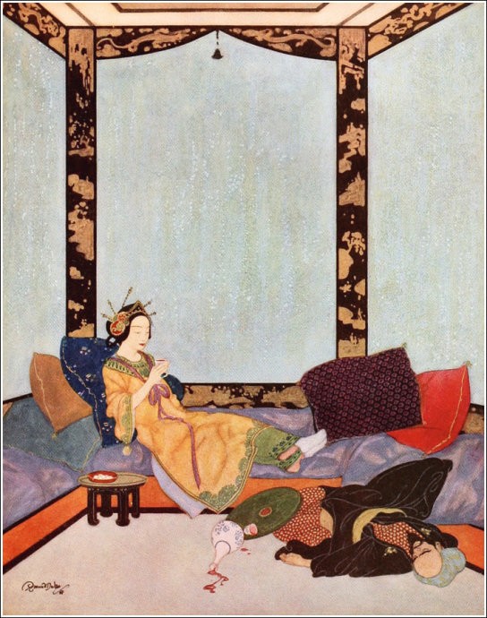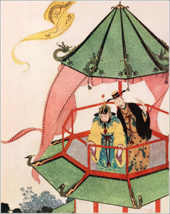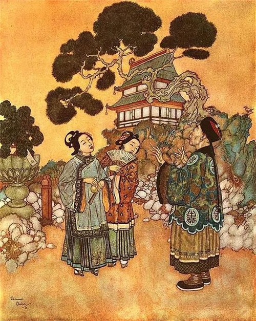 不过仔细看看他的这组《一千零一夜》插画,不难发现,人物脸庞外貌居然颇似东亚人尤其是中国人,阿拉伯人的五官特征反而较少。