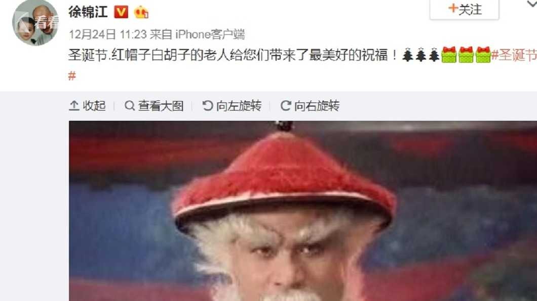 徐锦江本人也注意到这张有趣的图,昨天(24日)亲自在微博上表示,“圣诞节,红帽子白胡子的老人给您们带来了最美好的祝福”,让粉丝惊艳不已,纷纷留言表示“中国版圣诞老人”、“徐老师太可爱了”、“辛苦啦,圣诞节还看到您出来”。