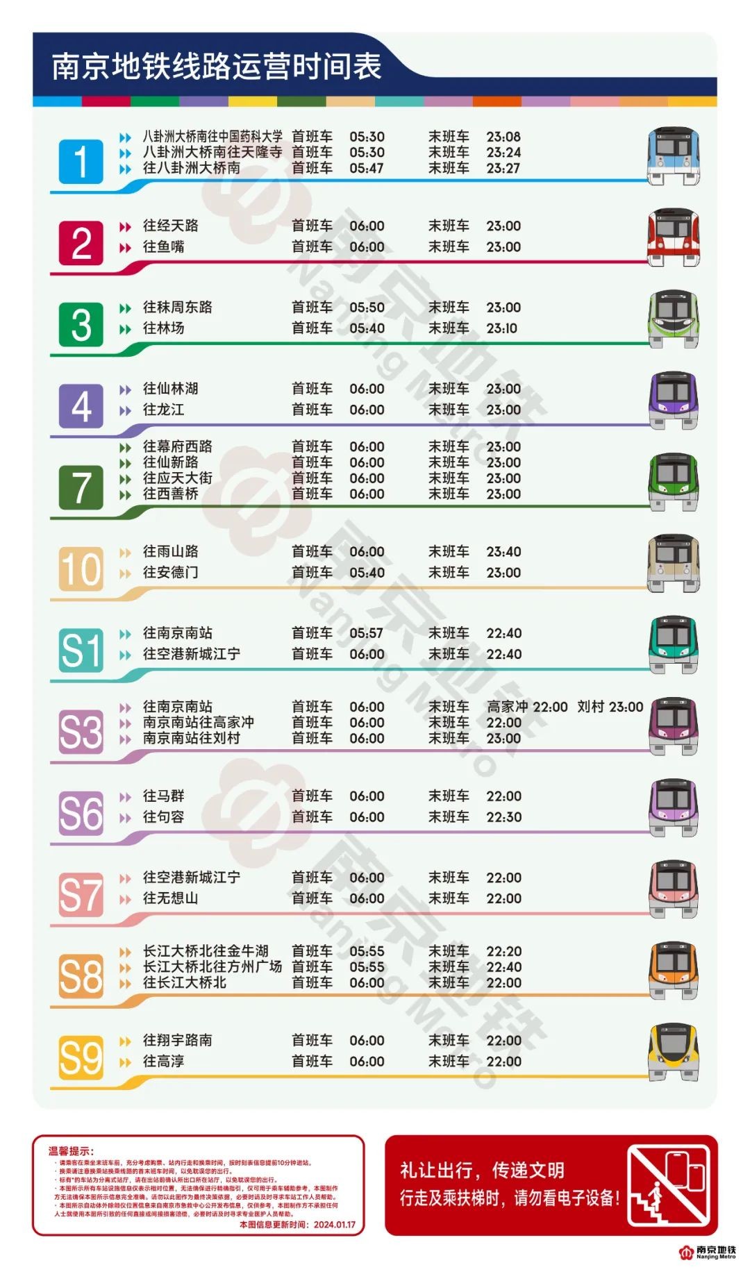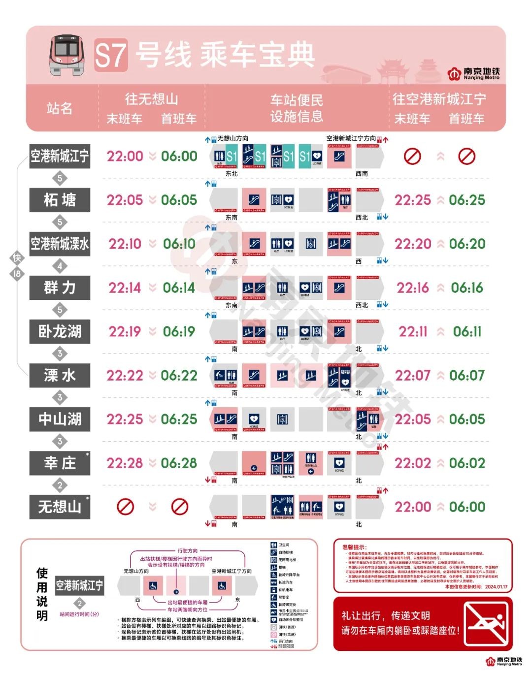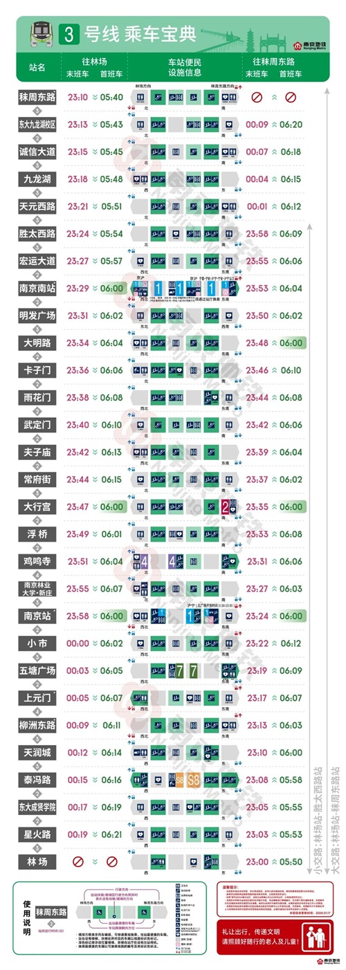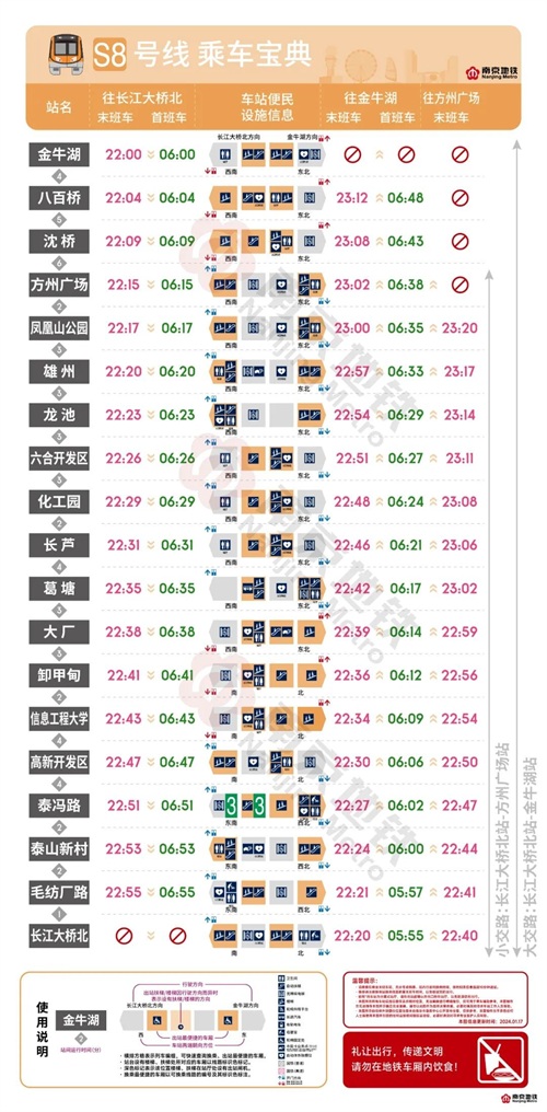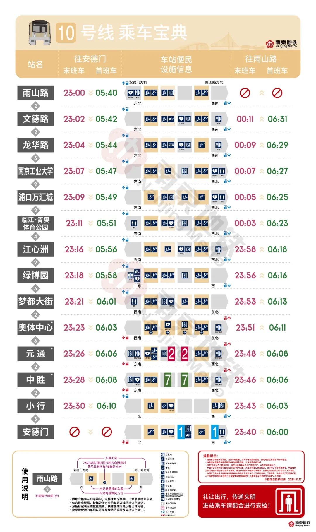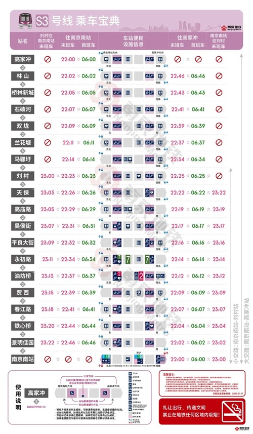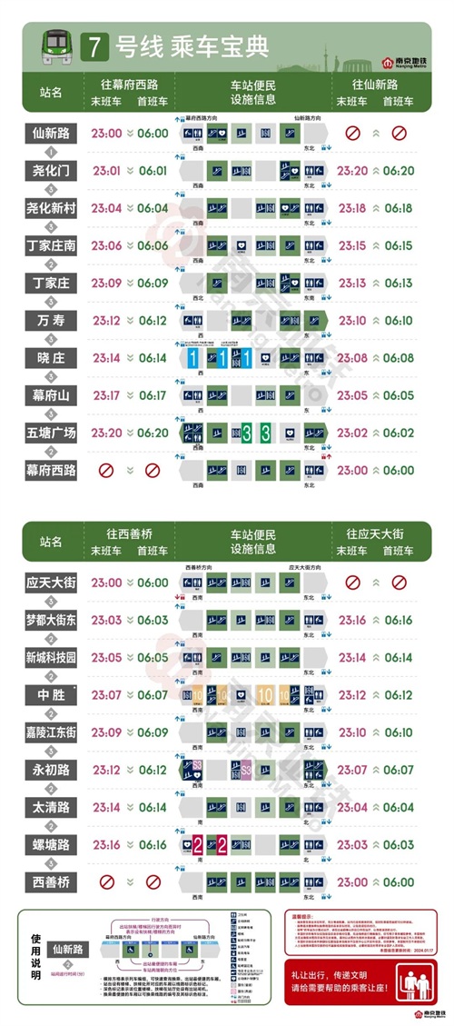 最新!南京12条地铁2024年运营时刻表、各站点便民设施信息发布→