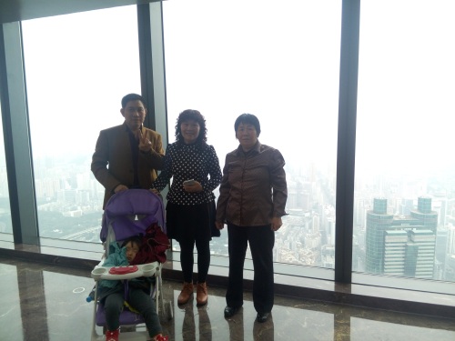 京基100(KK100),原名京基金融中心(KingKey Financial Center),楼高441.8米,共100层,是目前深圳第二高楼、中国内地第九高楼、全球第十七高楼。在深圳第一高楼平安金融中心建成之前观光的人还是挺多的,现在第二了少很多了。这次主要是带新疆过来的干爸干妈游览。