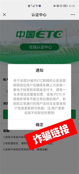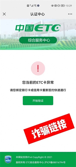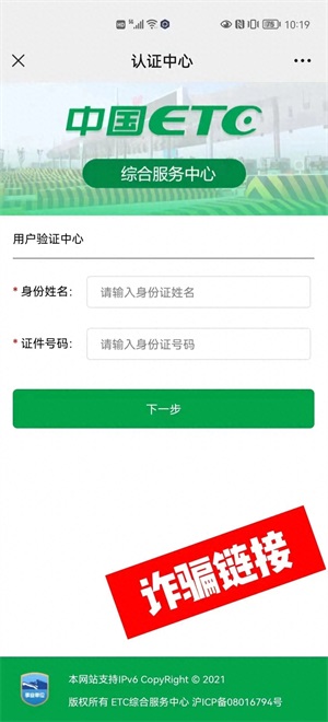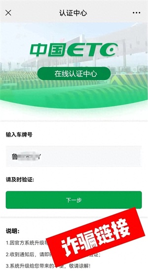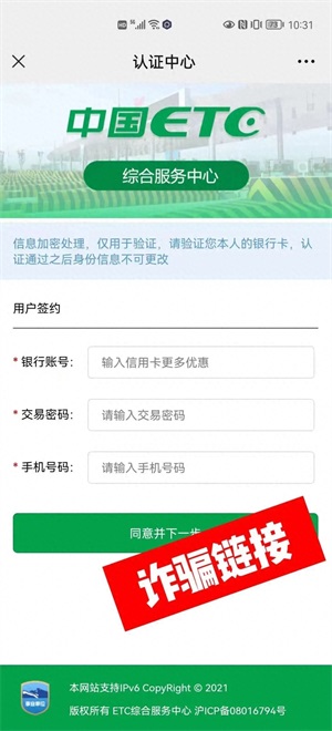 让车主点击短信里的链接办理ETC业务,且点击链接进入的网页看似与要办理的业务高度相关,进一步骗取车主的信任感,促使车主按照页面提示填写信息。