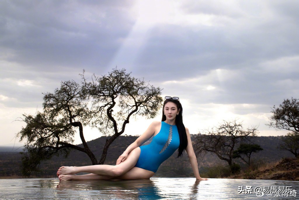 张雨绮蓝色美人鱼泳装,大方秀事业线,女人味道十足!