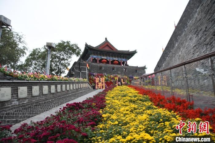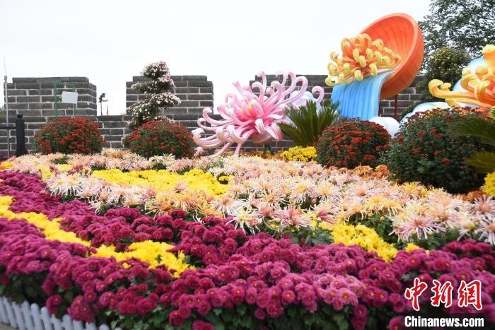 图为开封古城墙遗址菊韵正浓。 王宇 摄