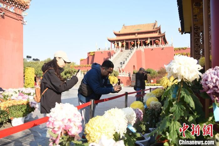 11月5日,在“八朝古都”河南开封,无论大小景点还是街头巷尾,随处可见盛放的菊花。目前,为期一个月的中国开封第42届菊花文化节正在进行中,本届文化节共布展菊花278万盆。图为海外游客在开封龙亭公园赏菊。 王宇 摄
