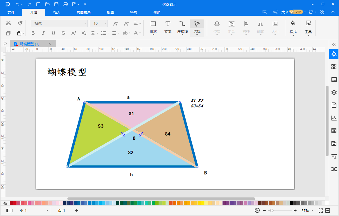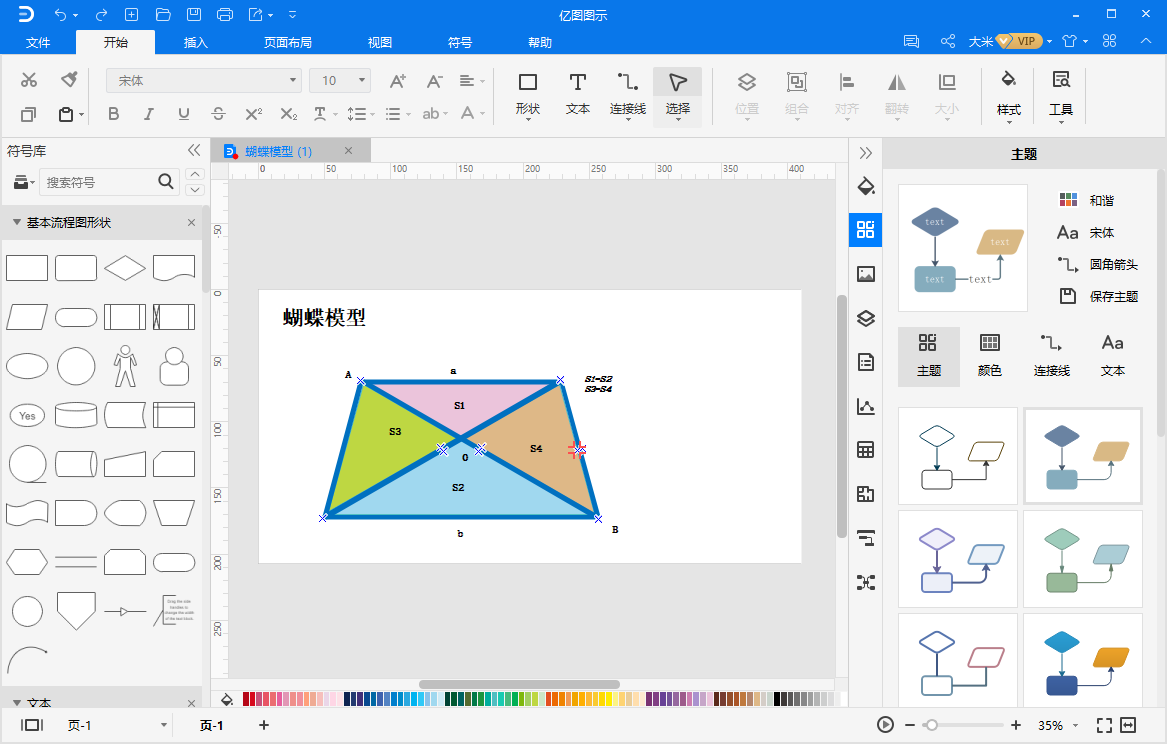 第三步:打开模板后点击画布左侧的符号库,将需要使用的符号拖动到画布中央,再点击右侧的主题样式版,切换不同的主题样式即可。