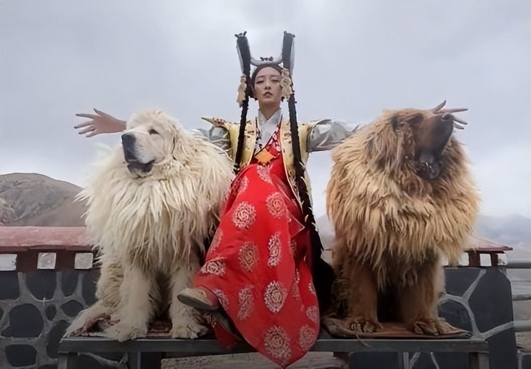 丁珠正是充分利用这一点,她将藏区风景做背景,布达拉宫为绿幕,戴昂贵的饰品,化着精致妆容,身穿藏族传统服饰盛装出场,一左一右两只藏獒站立在身旁,把藏族人那种霸气形象表现的淋漓尽致。