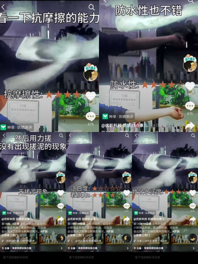 这是抖音博主优菜科技的视频截图。人是做芯片的,不卖防晒,这个够直观以及客观了不?