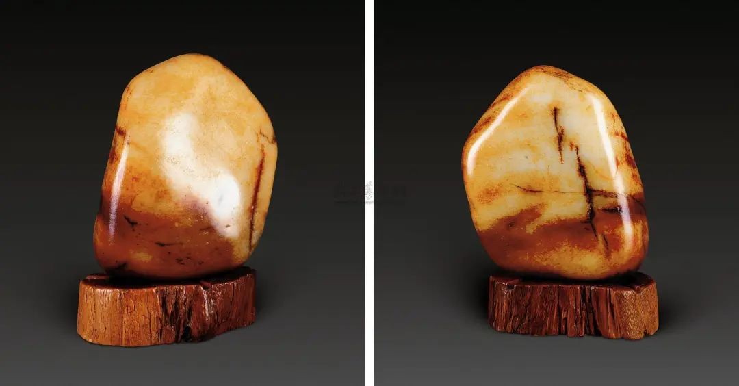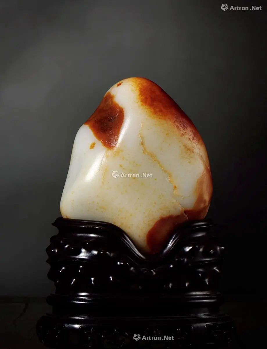 此料料形饱满,为极品摆件型,属无需玉雕技艺加工的顶级原料。加之料形似寿桃,更添寿比南山之意,璞石不琢自成一景,实是天工造物,令人叹为观止。