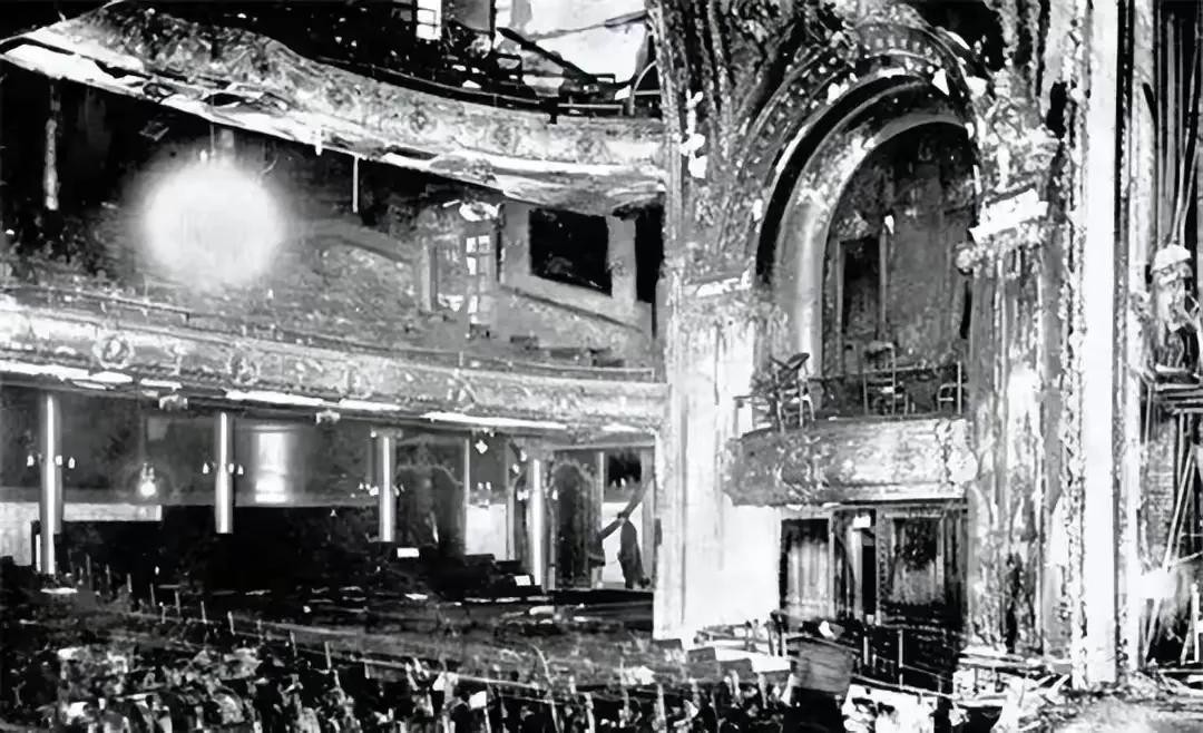 当时正在表演的聚光灯发生了短路,引起的火花点燃了薄纱窗帘,瞬间引起了大火。