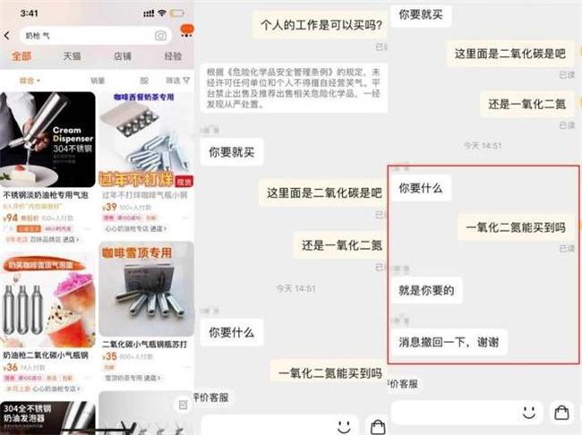 相关部门一直对于私自买卖“笑气”进行严厉打击和管理,在现实状况中双方交易是特别隐蔽的,长期游荡在灰色地带,在监管起来也是有一定的难度。据小迪介绍,前几年“笑气”的管理并不严格,能够在一些社交平台上购买,卖家会自己送货上来。