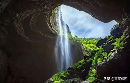 【硝洞岩瀑布】位于四川省乐山沙湾区。这里被誉为是川版的龙岭迷窟,奇魅绝伦的天坑巨洞和极其壮观的流水瀑布带给你视觉上极大的冲击。