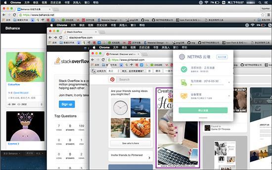 近期“Netpas云墙”继 iOS 和安卓版本后,隆重推出全新 Mac 版本,并且账户是共同的,手机、Mac 可以共享同一个账号下的流量。大家可以在 Mac 端享受流畅的网络加速体验了。使用 Mac 的用户多数是商务人士和有设计需要的同学,平时免不了需要上国外设计、程序、网盘存储等相关网站,忽快忽慢的速度令人心碎,时不时抽风和无法正常打开,图片无法显示的情况更是让人秒秒钟生出摔键盘的毁灭性心情。