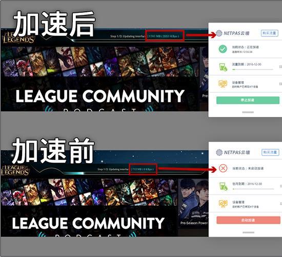 测试中下载更新美服《LOL》,大家都知道玩 LOL 这种竞技网游,网速是非常关键的。如果不开加速直连美服,那基本是 999 延迟,想死的心都有。据海外小伙伴反应,直连玩韩服延迟大起大落,有时候会跳到 300、400 多。相信国内想玩韩服、日服、美服的玩家不在少数(因为国服小学生太多?),同时条件有限,我们这里只用美服《LOL》做测试。