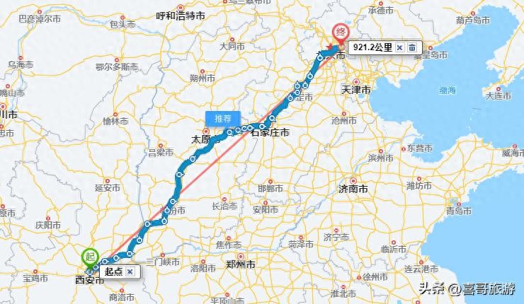 西安市政府到北京市政府直线距离约921公里。西安到北京选择不同的交通工具和目的地,距离有不同。北京旅游资源丰富,是西安及全国旅游爱好者的主要旅游目的地之一。