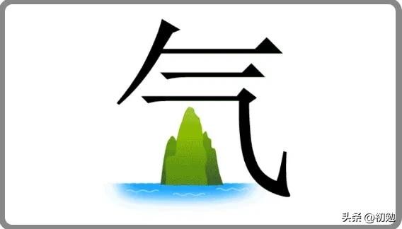 本题画面解析:气字中间画着一座立在河中的山。(仅供参考)