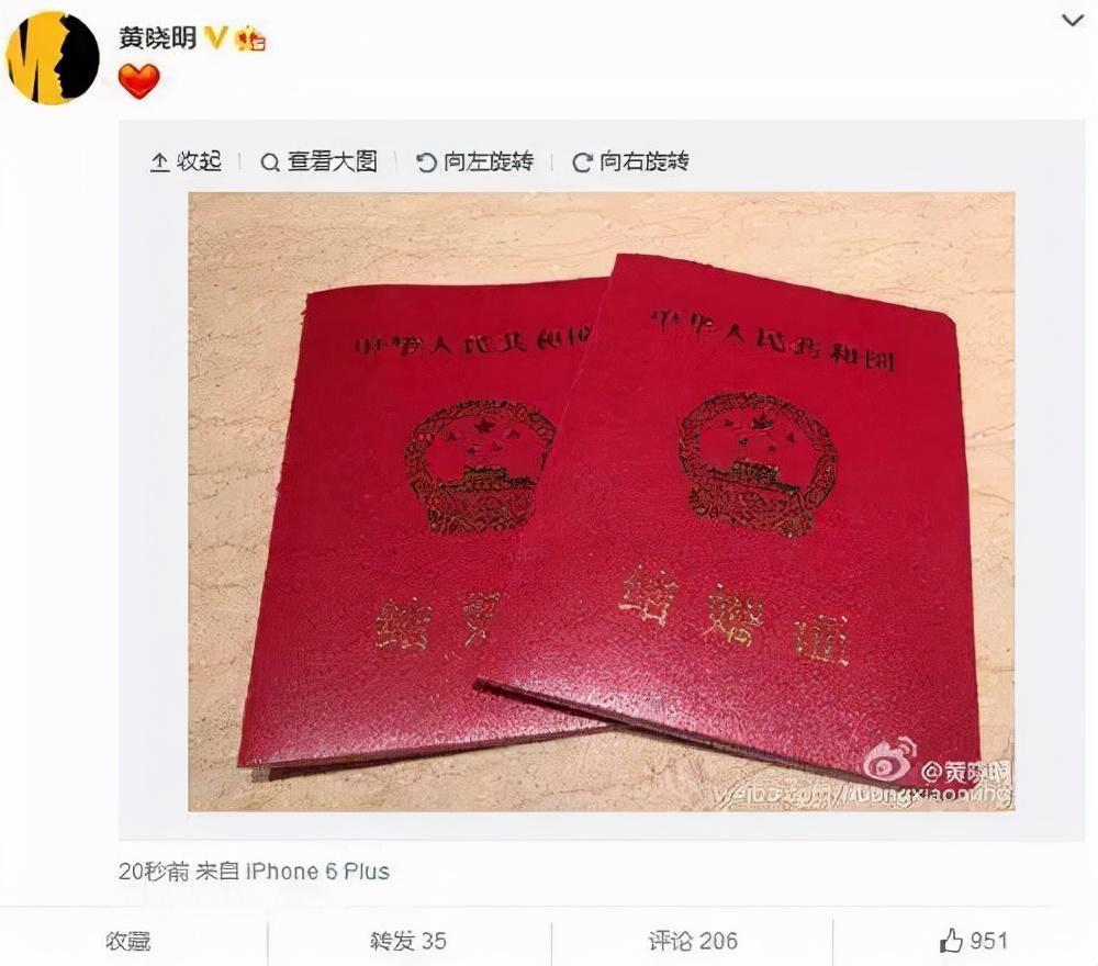 2015年5月27日,黄晓明与baby在青岛领证登记,日期是“我爱妻”的谐音,体现出两人的爱意满满。