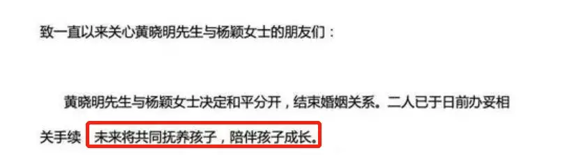 在黄晓明工作室的《声明》中指出,未来将共同抚养孩子,陪伴孩子成长。