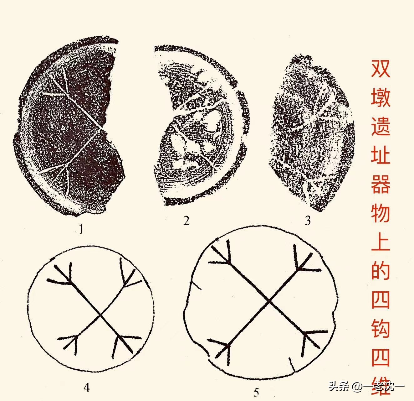 距今7000年前的双墩遗址出土器物上的图形,提供了极好的考古证明。见图一,特别是第一个图形,活脱脱就是个目前所知最古老的“亞”字。