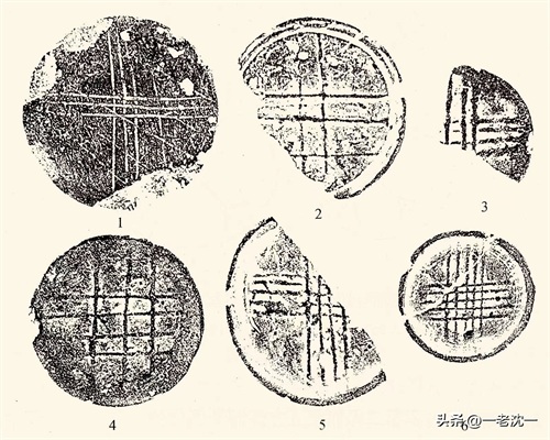 这种图案,古人称之为“二绳”,所指示的,显然是通过立杆测影测定的东南西北“四方”,加上侧影者所在之地,就形成了“四方五位”图形和“中央”的概念。