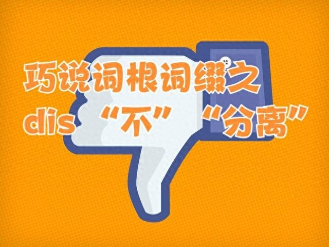 今天给大家介绍一个常见的前缀,dis-,它主要有两层含义,第一,表示“not, do the opposite of”, 否定的,相反的,通常翻译为不怎样或者没有什么;第二层含义是“apart, away”,表示分开,分离。自从嘻哈音乐开始火了之后,大家都喜欢说,diss谁,那这里的diss就和我们今天讲的这个前缀有关,一会儿告诉你。