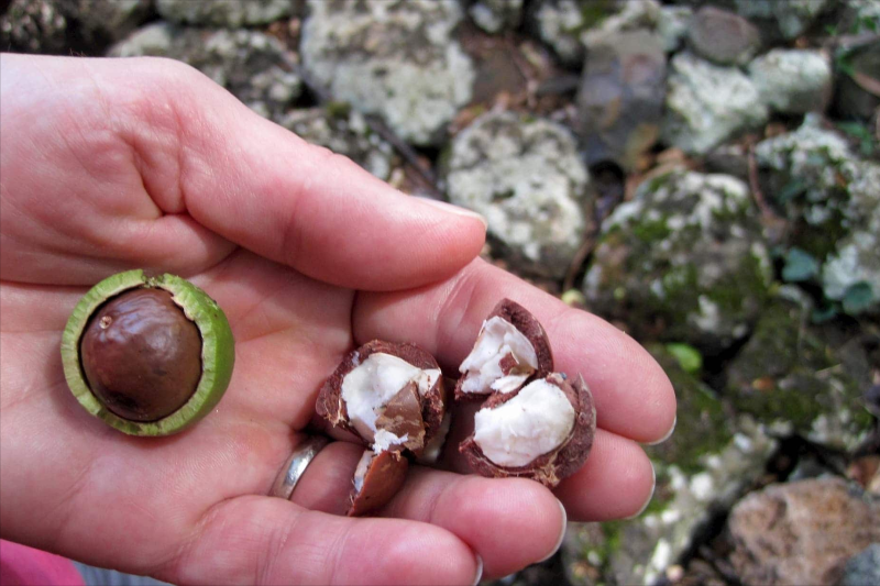 当树上的夏威夷果成熟后,他们会从树上掉下来,这个时候是采收夏威夷果的最佳时机。夏威夷果如果成熟度杠杠的,里面的硬壳上也会有一条细缝,这条缝隙是给硬壳里面的种子留的门,以便于自身的繁殖。