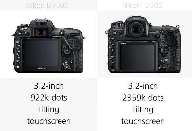 虽然两款相机都配备了3.2英寸后置显示器,但其中一款D7500的分辨率要低得多,这意味着它不适合拍摄或查看它们。然而,两个显示器都是触摸屏,并且可以倾斜以便在其他笨拙的拍摄位置中使用。