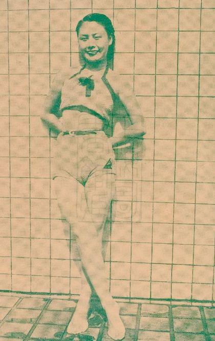图为:白杨在20世纪30年代的泳装造型——那时候的她大胆、浪漫,紧跟西方影圈的潮流,甚得当时小报版面的喜欢