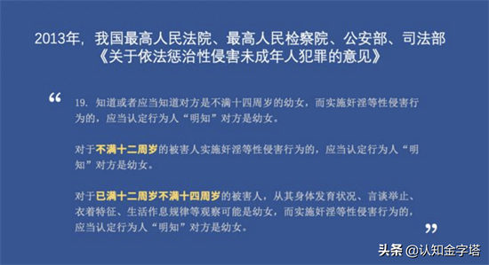 当然了,这个司法解释适用于12-14岁幼女,所以12岁是一条红线,如果女方是12岁以下,不管什么原因,不管男方知道不知道,一律构成强奸罪。