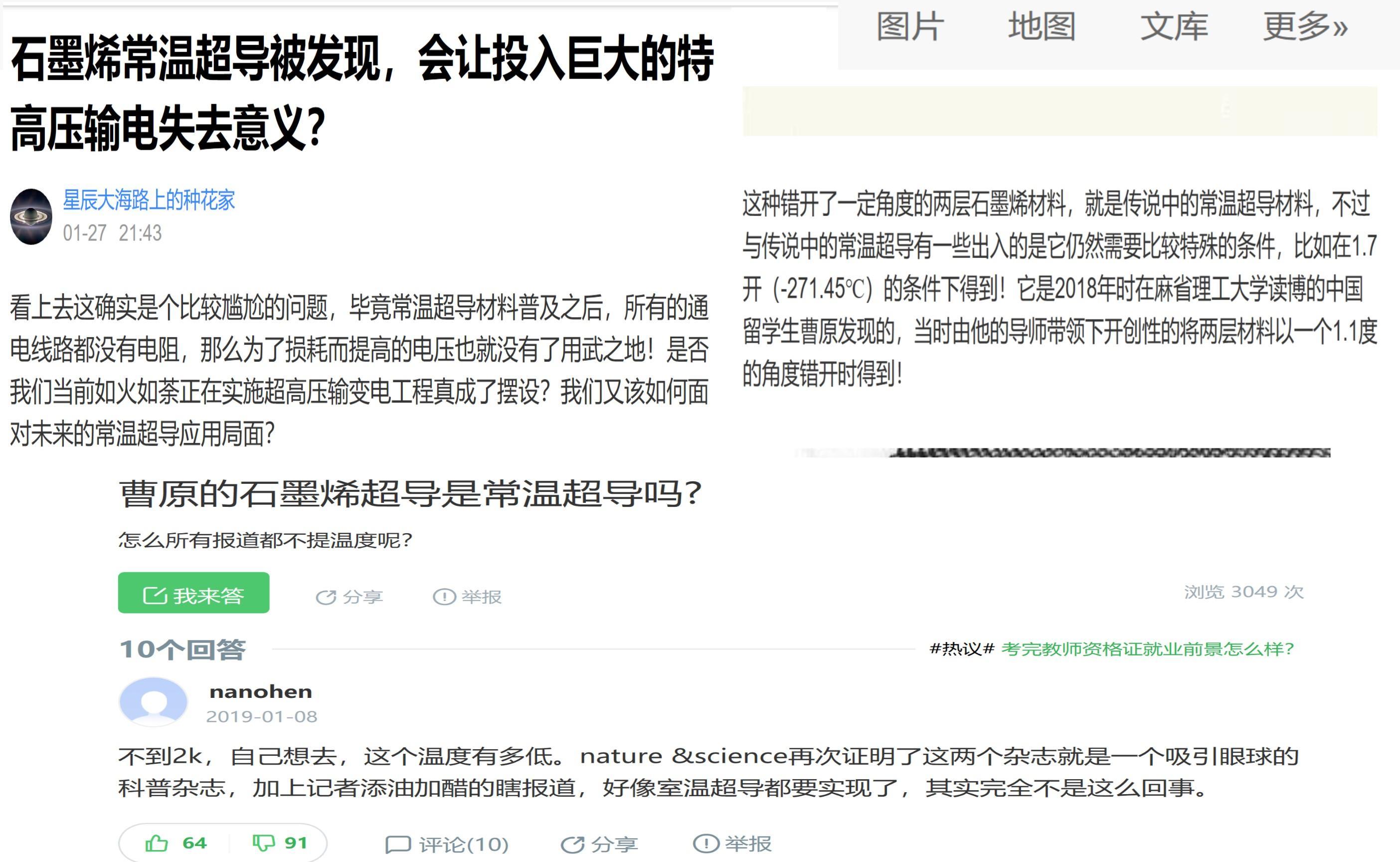 在这些任意夸大的报道中,已经完全忽略掉了成果的真实性,而是一味的介绍起了曹原的生平和天才,并且开始描绘常温超导体的广阔远景,似乎这种前景已经呈现在了眼前。这样就给了人们一个荒谬的误导~常温超导就要来了!