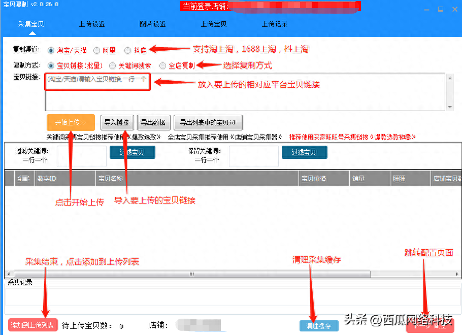 支持淘上淘、1688上淘和抖上淘,可以按宝贝链接采集,也可以搜索关键词采集,批量/全店复制。