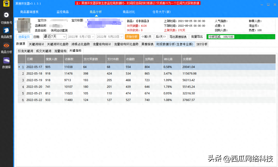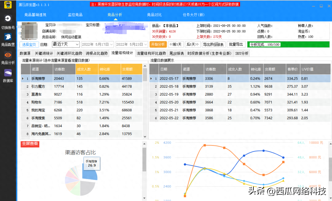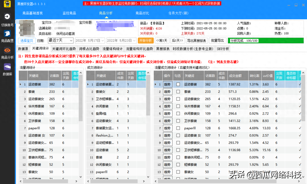 用黑s分析竞品的数据,看对手的流量结构和主要的成交方向,分析竞品的成交词、引流词,细化到每个关键词的转化和标题词根分析。