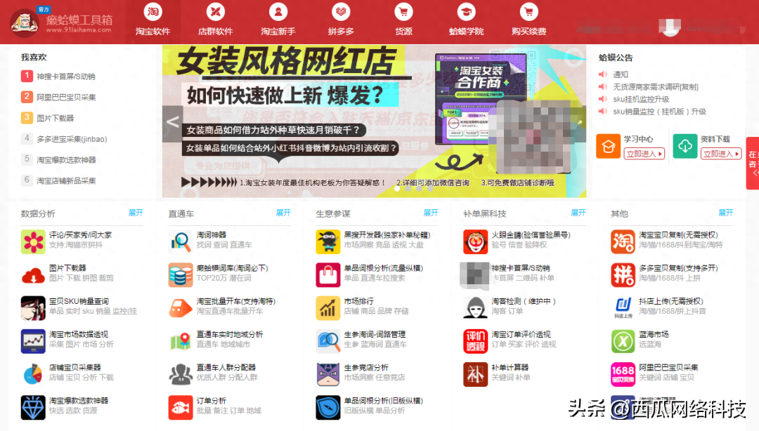 又根据不同阶段商家的需求独立了:淘宝新手、店群软件等两个板块。