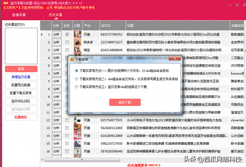 可以批量导出评语、下载买家秀,三种买家秀下载方式,可以根据需要导出。